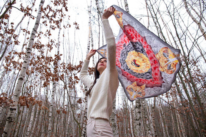 Silky Gang streetwear - lookbook scarves The golden fish, Firebird, Snowhite and Thumbelina